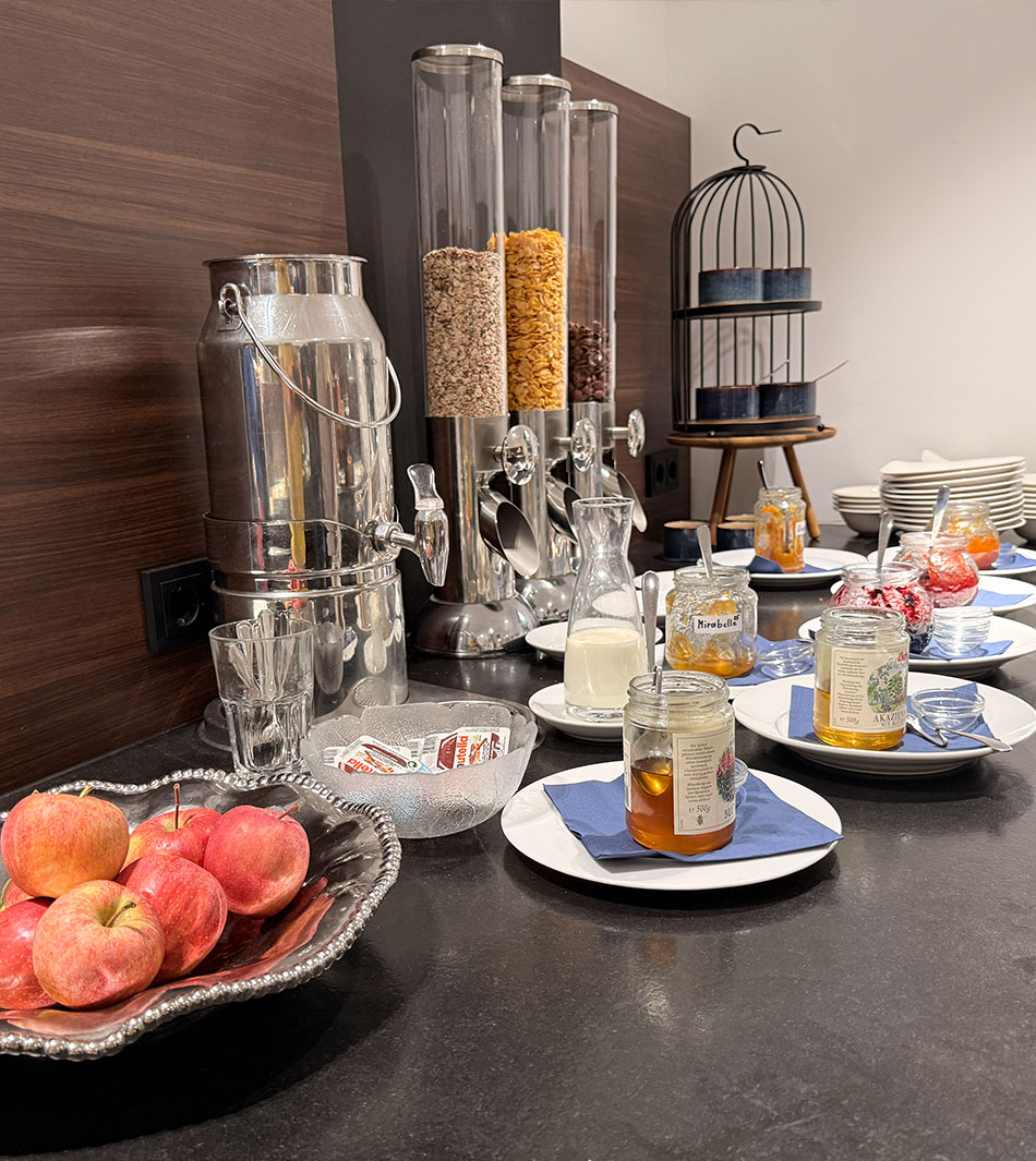 Stärke dich am reichhaltigen Frühstücksbuffet – täglich von 6:30 bis 10:00 Uhr, im Preis enthalten.